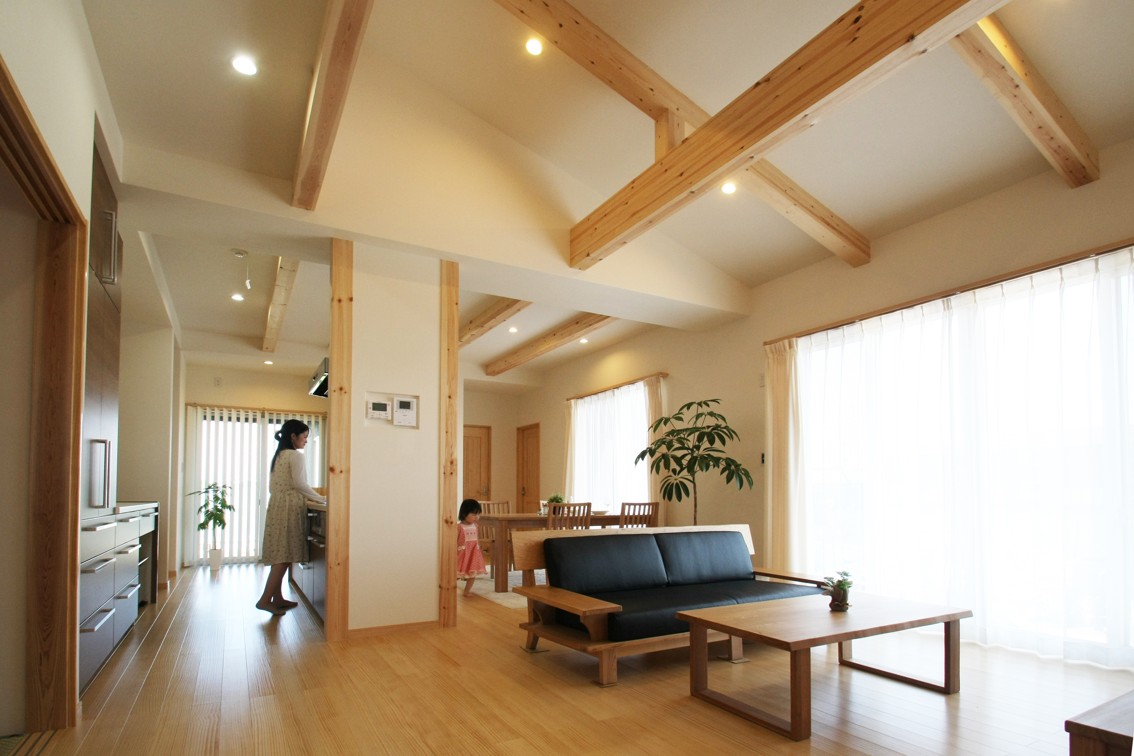 無垢材を贅沢に使用した無垢材の家の内部をご覧いただけます。